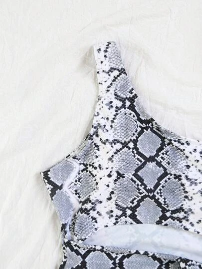 Snakeskin Print One Shoulder One Piece Swimsuit