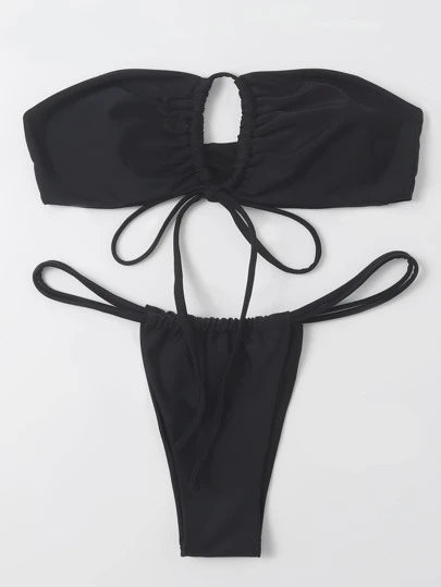 Be the first to review “Solid Bikini Set Tie Front Bandeau Top & Thong Bottom 2 Piece Bathing Suit” Cancel reply