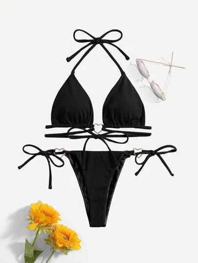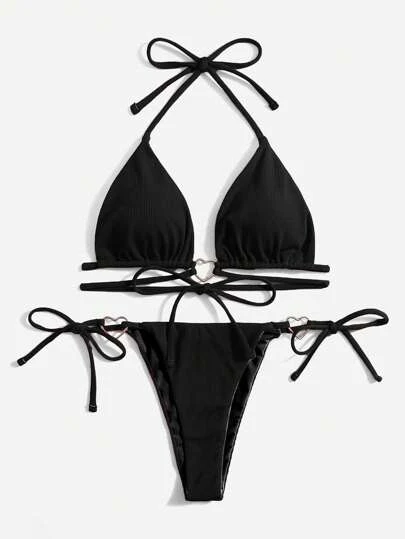 Be the first to review “Solid Heart-ring Linked Halter Triangle Tie Side Bikini Swimsuit” Cancel reply
