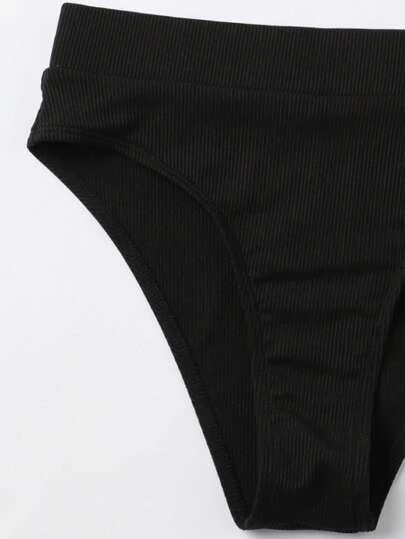 Solid Rib High Waisted Bikini Swimsuit