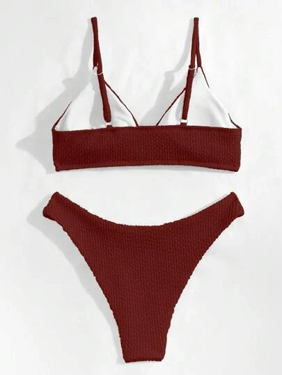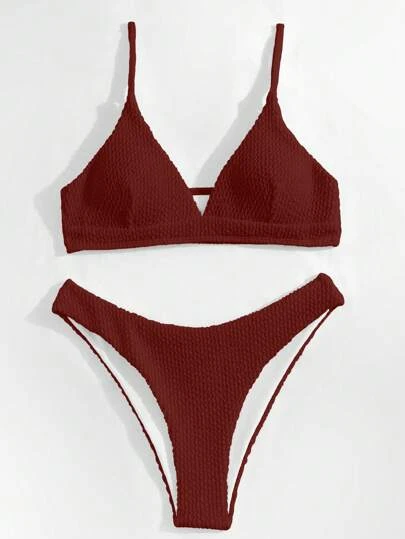 Solid Triangle High Cut Bikini Swimsuit