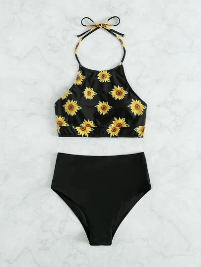 Be the first to review “Sunflower Print Tankini Set High Neck Halter Top & High Waist Bikini 2 Piece Swimsuit” Cancel reply