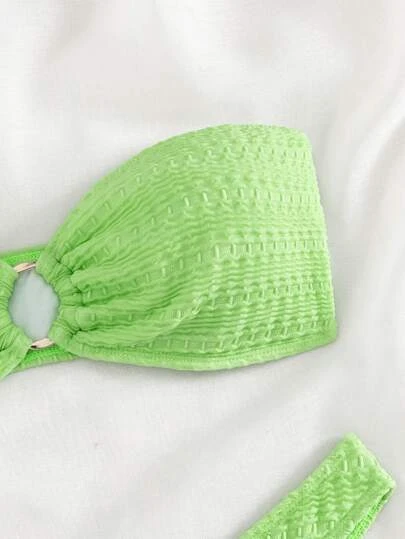 Textured Bikini Ring Linked Bandeau Bra & Bikini Bottom 2 Piece Bathing Suit