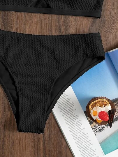 Be the first to review “Textured Bikini Set Ring Linked Cut Out Bra Top & High Waisted Bikini Bottom 2 Piece Swimsuit” Cancel reply
