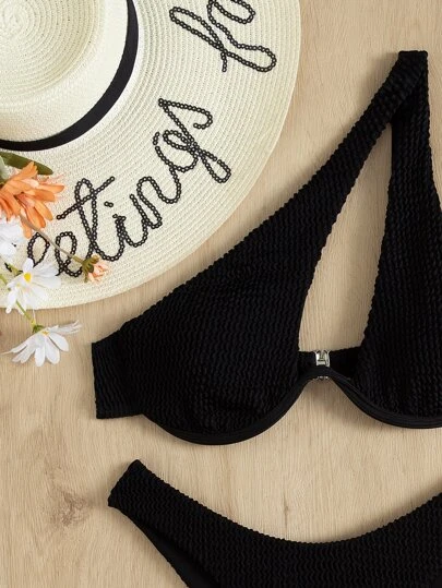 Be the first to review “Textured One Shoulder Underwire Bikini Swimsuit” Cancel reply