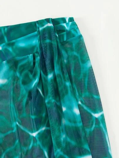 Tie Dye Bikini Set Halter Triangle Bra & Bikini Bottom & Cover Up Skirt 3 Piece Bathing Suit