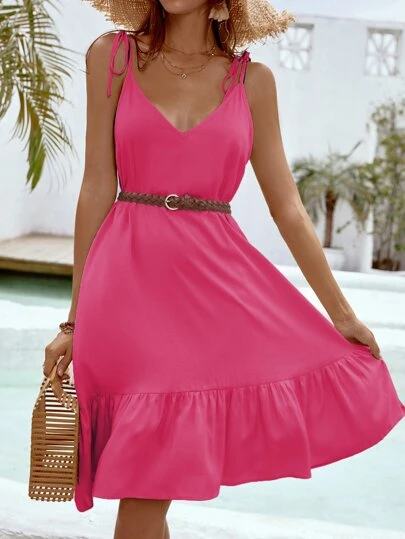 Be the first to review “Tie Shoulder Ruffle Hem Cover Up Dress Without Belt” Cancel reply