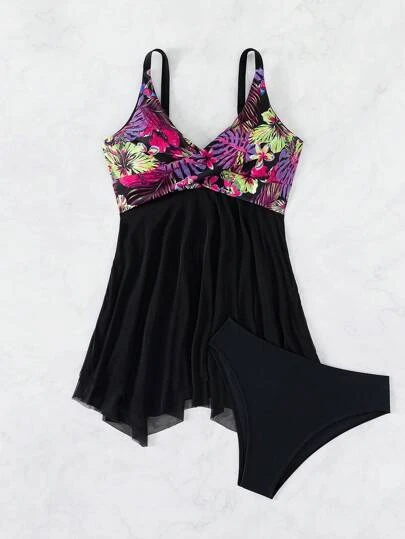 Be the first to review “Tropical Print Contrast Mesh Bikini Swimsuit” Cancel reply