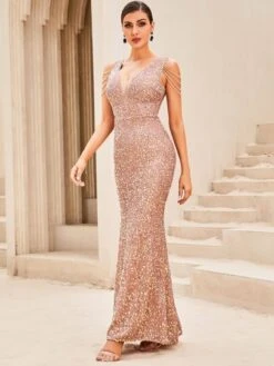 LOVE&LEMONADE Open Back Mermaid Hem Sequin Slip Formal Dress