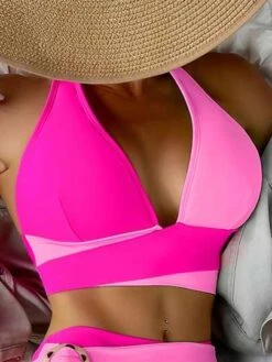 Colorblock Bikini Set Contrast Binding Tank Bra & Bikini Bottom 2 Piece Bathing Suit