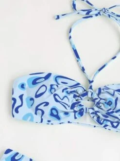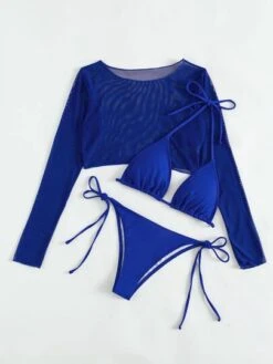 4pack Halter Bikini Swimsuit With Dragon Print Mesh Cover Up