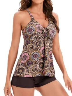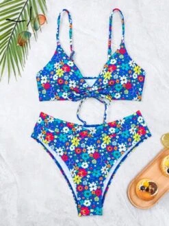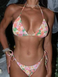 Floral Print Halter Triangle Bikini Swimsuit With Beach Skirt
