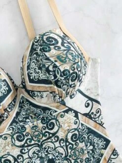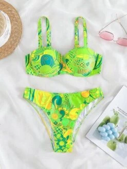 Bikinx Floral Print Bikini Set Chevron Tape Cami Top & High Cut Bottom 2 Piece Swimsuit