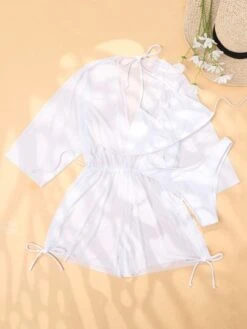 Sheer Mesh Bikini Set Halter Triangle Bra & Thong Bottom & Cover Up Dress 3 Piece Bathing Suit