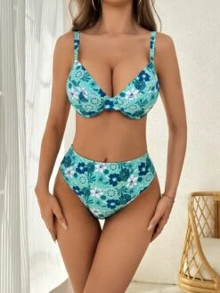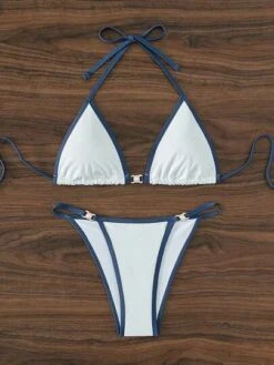SHEIN DD+ Plain Halter Triangle Bikini Swimsuit With Cover Up