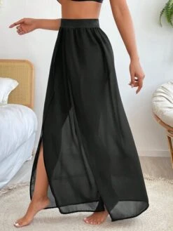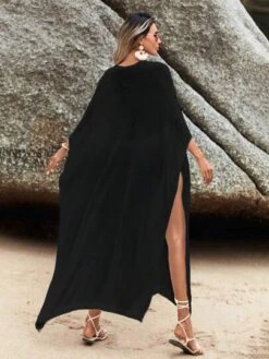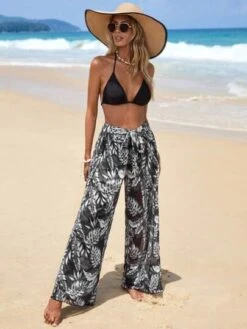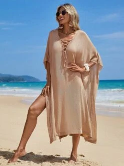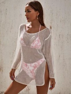 SHEIN Striped Print Flounce Sleeve Ruffle Hem Cover Up Dress