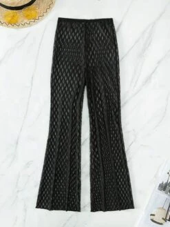 Hollow Out Drawstring Waist Crochet Flare Leg Cover Up Pants