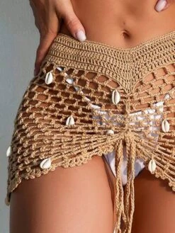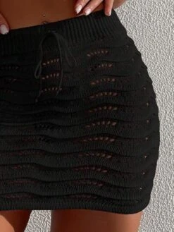 Hollow Out Drawstring Side Crochet Cover Up Skirt Without Bikini