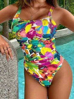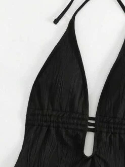 SHEIN Contrast Binding Crisscross Backless One Piece Swimsuit