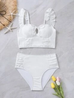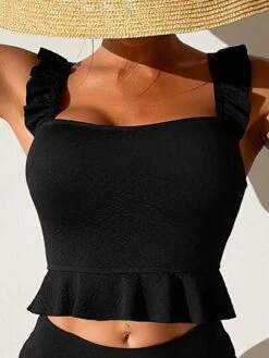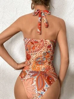 Random Tropical Print Tankini Set Knot Strap Longline Tank Top & Boxer Shorts 2 Piece Swimsuit