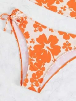 Sunflower Print Tankini Set High Neck Halter Top & High Waist Bikini 2 Piece Swimsuit