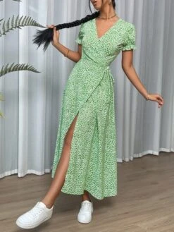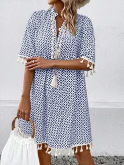 SHEIN VCAY Contrast Lace Tie Backless Butterfly Sleeve Dress