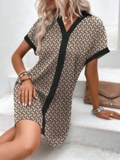 SHEIN LUNE Graphic Print Mock Neck A-line Dress Without Belt
