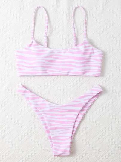Zebra Stripe Bikini Set Wireless Bra Top & High Cut Bikini Bottom 2 Piece Swimsuit